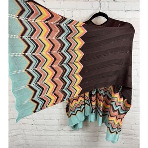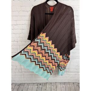 MISSONI for Target chevron wool blend brown multicolor poncho ruana cape wrap OS