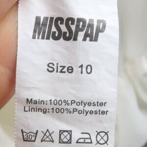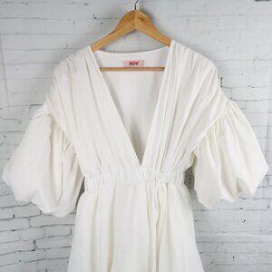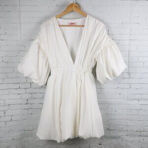 MISSPAP WHITE DEEP V NECK 1/2 PUFF SLEEVE BUBBLE DRESS SIZE 10