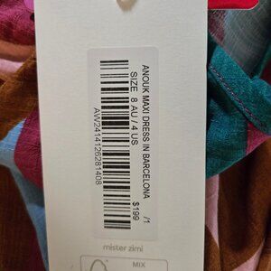 Mister Zimi Anouk Maxi Dress in the Barcelona print. Size 4, brand new, still has tags. Original retail $199. 100% LENZING™ ECOVERO™ Textured Viscose.