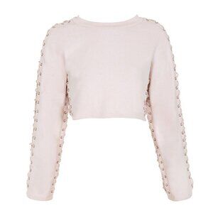 LACE ME UP Blush Cropped Sweatshirt sz M Women's Crop Pullover