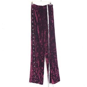 MISTRESS ROCKS Valiant Burgundy Crushed Velvet Side Snap Pants Small