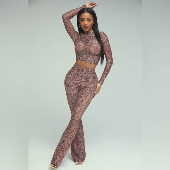 Animal Print Mesh High Waist Trousers