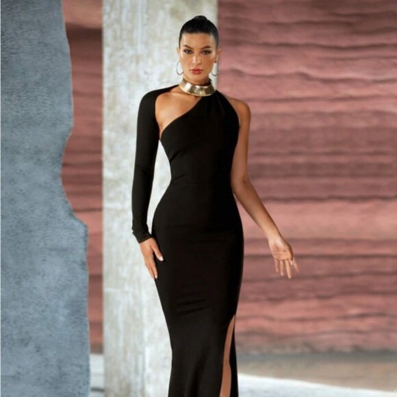 - Elasticized off-the-shoulder neck