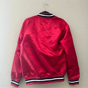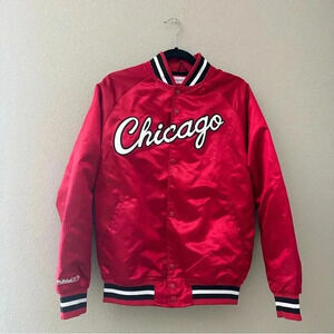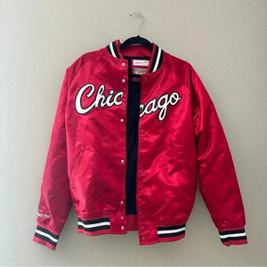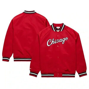 MITCHELL & NESS Men's Chicago Bulls Red Hardwood Classics Throwback Wordmark Raglan Full-Snap Jacket. Size Small