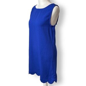 MITTOSHOP Size S Women's Cute Lightweight CREPE SCALLOP Hem Zip Dress Blue