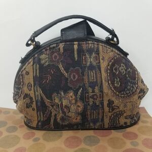 Small Mitzi handbag. Approximately 9" x 5.5" x 3". It reminds me of a small old fashioned doctors bag. Lol. Pretty tapestry fabric. Handle is 7". Good used condition.