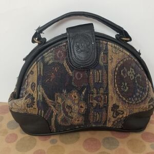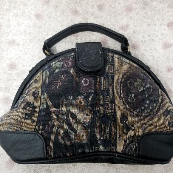Small Mitzi handbag. Approximately 9" x 5.5" x 3". It reminds me of a small old fashioned doctors bag. Lol. Pretty tapestry fabric. Handle is 7". Good used condition.