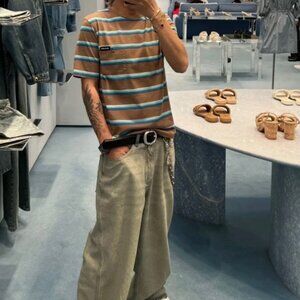 MIU MIU 2024 Men's and Women's Couple Stripe Fashion Short Sleeve