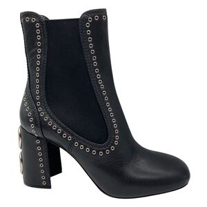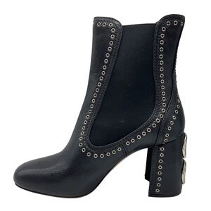 Miu Miu Black / Silver Studded Leather Pull On Ankle Boots