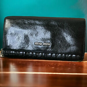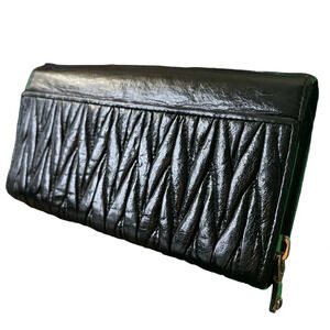MIU MIU Black Matelassé Leather Wallet