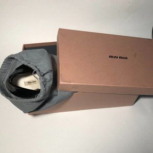 MIU MIU Black Patent Leather Open Toe Wooden Heel