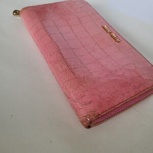 MIU MIU Croc Embossed Pink Leather Zip Around Wallet Clutch Continental Large