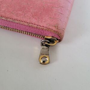MIU MIU Pink Leather Zip Long Wallet Clutch Logo Continental Large.