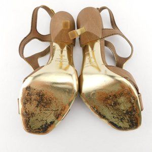 Brown Leather Ankle Strap Heel Sandals Pumps