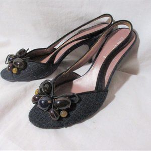 MIU MIU ITALY Stiletto HEEL Sandal Open Toe Shoe BLACK Tweed 36