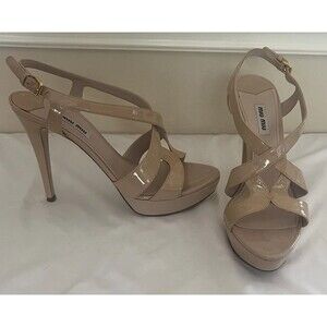 MIU MIU Nude Patent Leather Platform Sandals Size: 39.5/ 9.5 Made in Italy