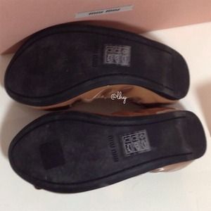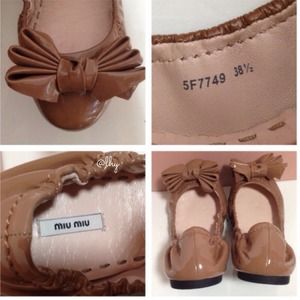 Authentic! With original box and card. No shoe bags. Worn once and like new condition. Dark beige patent flats with feminine bow detail. Elasticized trim for maximum comfort. Rubber soles. True to size (8.5) Please be familiar with sizing of Miu Miu footwear or feel free to ask for measurements if necessary prior to purchase.❌NO TRADES. NO PP. UNREASONABLE OFFERS WILL NOT BE REPLIED TO❌