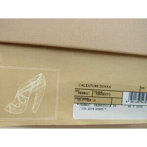 SILVER GLITTER LEATHER 5K880C BUCKLE CRISSCROSS STRAP PEEP TOE PUMPS