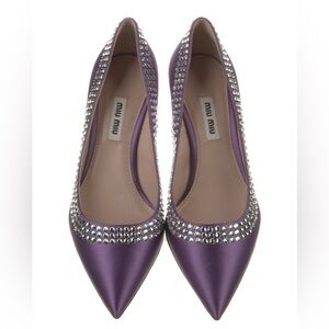 MIU MIU Pastel Lavender Purple Summer Satin Crystal Embellishment Heels 36 NWT