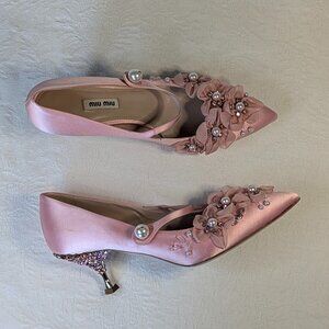 MIU MIU Pink Satin Encrusted Mary Jane Pumps Size 40 NWOB