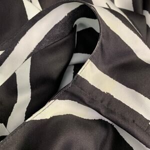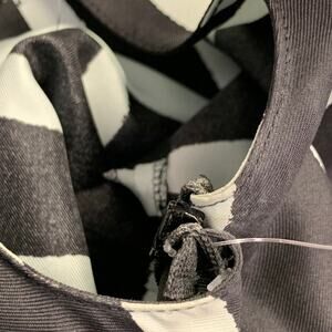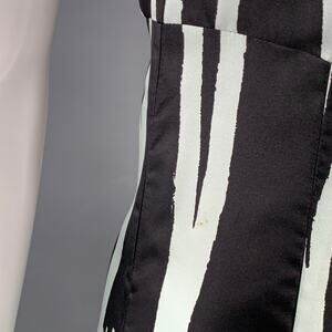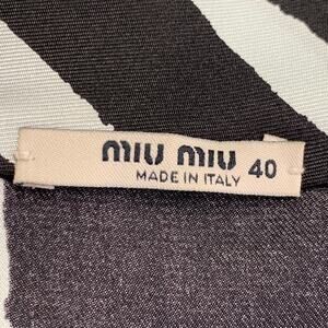 MIU MIU dress in a black and light blue silk featuring a stripe pattern, cowl neck, and invisible side zipper. Made in Italy.