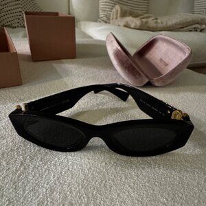 Elevate your style with Miu Miu MU 11WS sunglasses, a perfect fusion of past and present. The solid dark grey lenses paired with black oval frame exude sophistication and elegance, while the iconic bow detail adds an unmistakable touch of flair. Crafted from premium acetate material, this exquisite pair offers both comfort and timeless allure. Embrace the essence of miu miu's signature aesthetic in these exquisite shades that effortlessly bridge the gap between tradition and modernity.