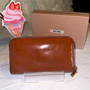 MIU MIU Tanish-Mauve Enamel Leather Long Wallet, Authentic, EUC