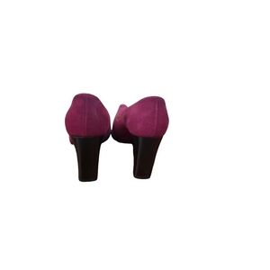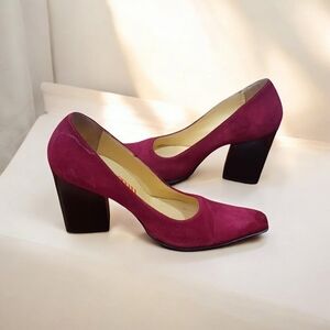 Elevate your shoe game with these stunning Miu Miu heels. The vintage suede and wood block design adds a touch of sophistication to any outfit. Perfect for a night out or a day at the office, these plum-colored heels are sure to turn heads. Crafted with quality materials, these block heels feature a comfortable fit and a stylish design. The EU size 37.5 and US size 7 make them a perfect fit for any woman looking for a chic and stylish addition to her wardrobe. Don't miss out on the opportunity to add these Miu Miu heels to your shoe collection.