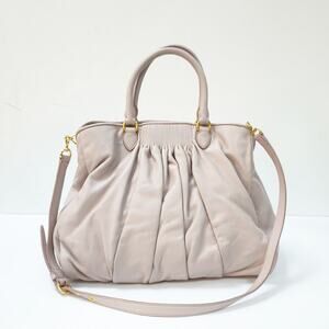 Add a touch of luxury to your wardrobe with this beautiful MIUMIU pink leather tote bag! This stylish bag is perfect for everyday use and will elevate any outfit.