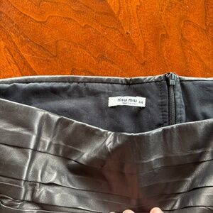 Never worn, very soft and chic black lambskin leather hip length boostier top by MIUMIU in size 44 Euro which is 8 in US. ZIps up in the back.