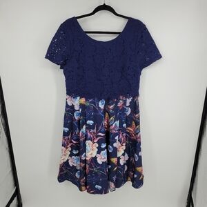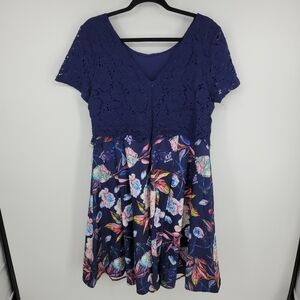 MIUSOL Womens Navy Floral Lace Sleeve Dress Plus Size XXL