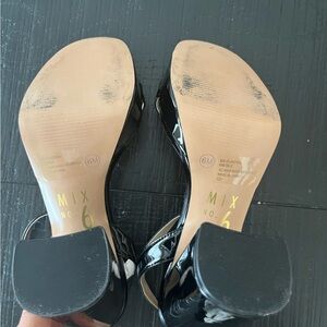 MIX NO. 6 SUNDRA PLATFORM SANDAL BLACK PATENT SIZE 6