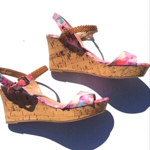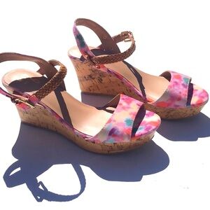 MIX NO. 6 ✦ Zessi Floral Wedge Sandals ✦ Braided Ankle Straps Watercolor Size 8