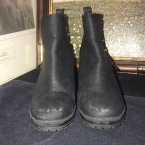 Mix No. 6 weinbaum black leather zip-up platform bootie. Size 9. Scuffs on both toes.