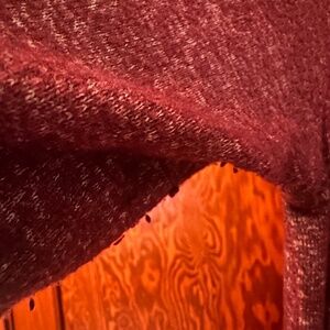 Super Casual knit dress with some pilling in the underarms (as pictured). Only worn twice. This dress is somewhat stretchy, knee-length and heather maroos. It's great with white tennis shoes or boots in the fall/winter!