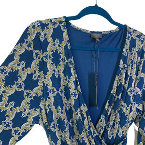 MIX x 41HAWTHORNE Teal Blue & Gold Demask A-Line Dress - NWT