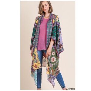 MIXED Scarf Print Angel Sleeve Open Front Kimono