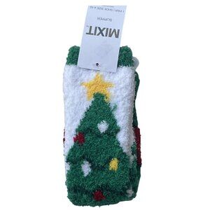 MIXIT 1 Pair Christmas Tree Cozy Fleece Non-Slip Slipper Socks Fits Shoe 4-10