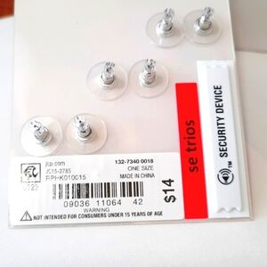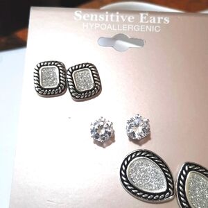 Brand new set of three, cubic zirconia stud earrings for sensitive ears, by MIXIT. In original packaging with tags and great for everyday wear!