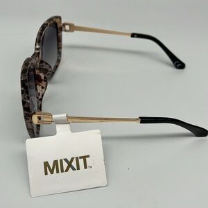 MIXIT Square Cheetah Print Gold Wire Single Bridge Black Temple Tips Sunglasses