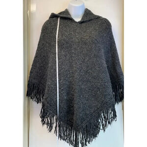MIXIT Womens Dark Gray Pancho Hooded Wool Blended Fringe Hem