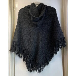 MIXIT Womens Dark Gray Pancho Hooded Wool Blended Fringe Hem