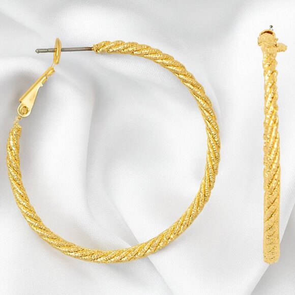 MIXIT Women’s Gold-Tone Twisted Rope Hoop Earrings – 1.5" Hypoallergenic Jewelry