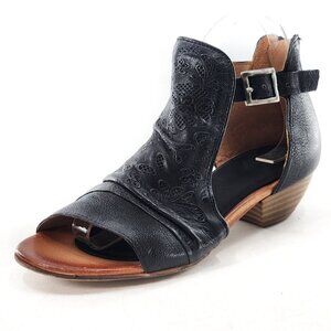 MIZ MOOZ Corra Black Floral Leather Open Toe Low Heel Sandals Zipper Closure Adjustable Strap Comfort Shoes