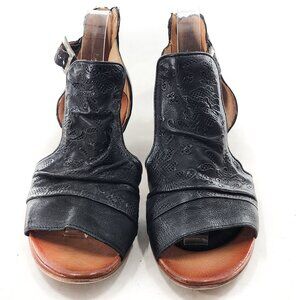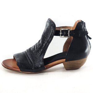 MIZ MOOZ Corra Black Floral Leather Open Toe Low Heel Sandals Zip