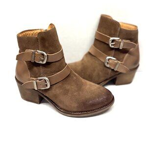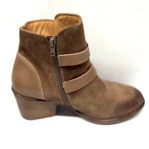 MIZ MOOZ LEATHER BUCKLE ANKLE BOOTIE SIDE ZIP TAUPE 37EU / 7US # Z-16