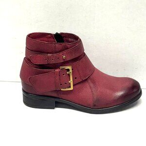 MIZ MOOZ LEATHER BUCKLE ANKLE BOOTIE SIDE ZIP WINE 37EU / 7US # Z-14