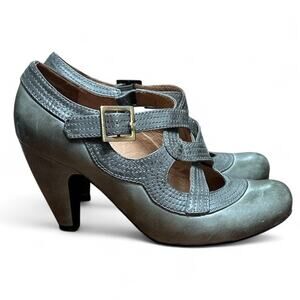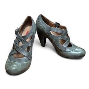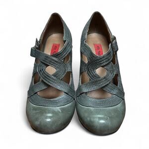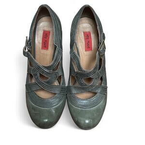 MIZ MOOZ Soho Green Gray Leather Heels Size 7 Cutout Mary Jane Buckle Pumps