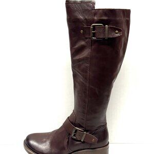 MIZ MOOZ TALL BOOTS SIDE ZIP 2 BUCKLES GORE CHESNUT 37EU / 7US NEW # Z-07