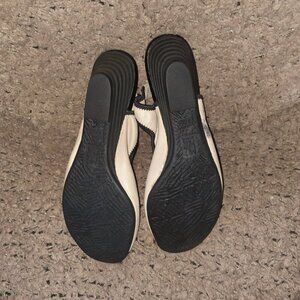 MIZ MOOZ-Dory-Beige Leather/Black Elastic Stretch Slingbacks-Sz 38.5-Excellent